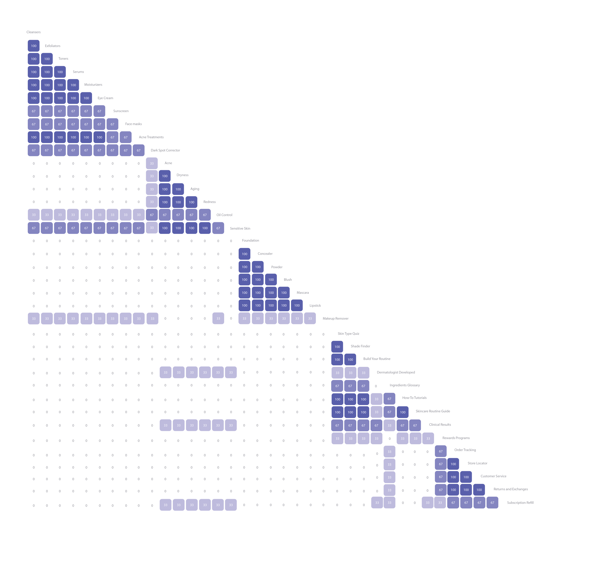 The open card sorting study revealed another important insight: people tend to think about skincare in terms of problems and solutions, not product types. Instead of starting with categories like “serums” or “cleansers,” users naturally grouped products by concerns such as acne, dryness, or sensitivity.